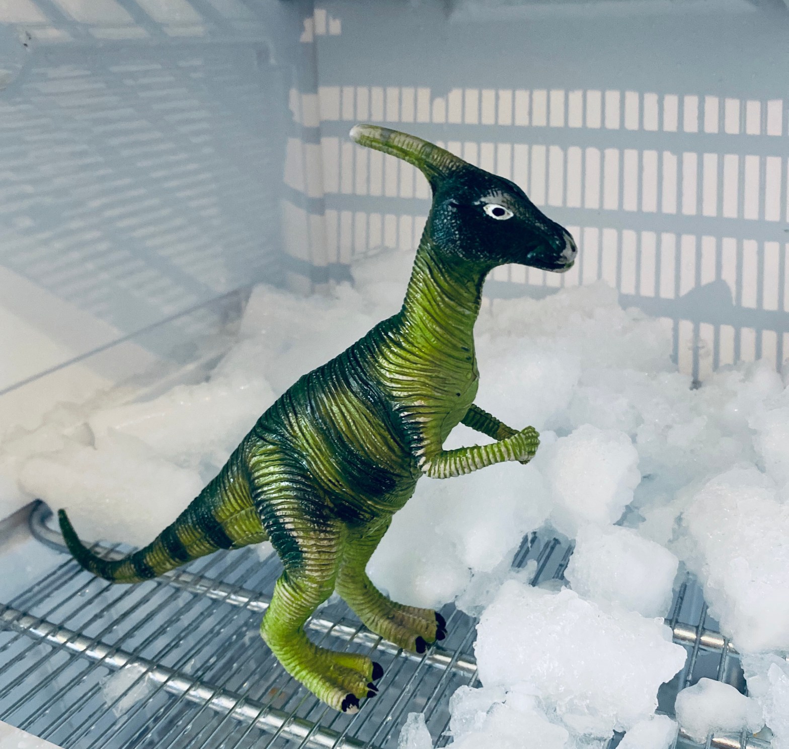 Well, in a toddler’s mind, a freezer was the perfect world for it to live in. But I knew it didn’t belong there. Not that I’m a palaeontologist or anything, but you’d never logically associate dinosaurs with thriving in icy conditions, would you?